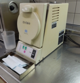 少し前に読売新聞で話題になった切削器具の滅菌の記事をみなさんご覧になりましたか?当院は以前から診療で用いる回転切削器具は専用のEX Clave(モリタ)により高圧蒸気滅菌を行っております。診療で最も使う機会が多い器具だからこそ滅菌もしっかりするべきだと考えております。切削器具の先のバーなども同じく滅菌していますので安心して診療を受けることができます。