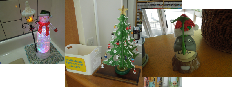 いつも本棚の上にこっそりいるトトロもクリスマスの準備は万端で患者様をお迎えしています!!また若先生がセレクトしたクリスマスソングも…診療中耳を傾けてみてください。