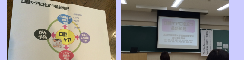 7月2日に歯科衛生士2名で高知学園短期大学に弘田克彦教授による「口腔ケアに役立つ最新知見」という講演を聞きにいきました。